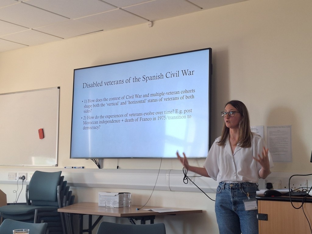 - Dr Stephanie Wright’s (Lancaster University, UK) paper was entitled ‘Dis/economies of welfare: war, disability and Francoist veterans of the Spanish Civil War’