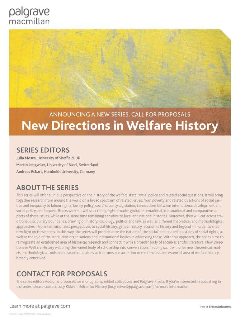 A quarter of the way into the twenty-first century, with conservatism once again in the ascendancy globally, Western democracies are again re-evaluating the role of the State in caring for citizens and reconsidering which citizens “deserve” which benefits. Now, therefore, is the time to reflect on the current state of welfare and its historical underpinnings. Which debates are repeating? Which are new? How does the past inform the present? To fully answer these questions, it is also necessary to identify, interrogate, and broaden our understandings of what “welfare history” is and who conducts that research.